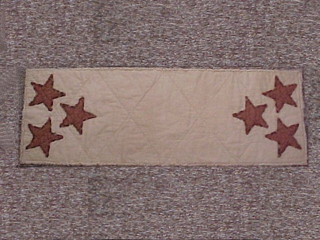 Tea Stained Muslin Table Runner Quilted with 6 Primitive Homespun Stars