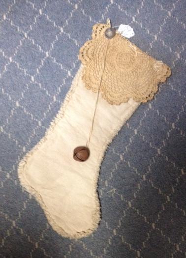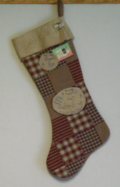 Tea Stained Osnburg Muslin Quilted Stockings can be ordered to hang left or Right (shown) Hand Made of 100% washable Cotton' In Trexlertown, PA Stockings are $29.95 Ea.