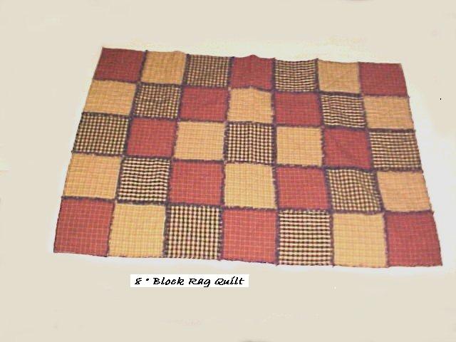 8" Block Rag Quilt made of 100% Cotton Homespun Fabric |